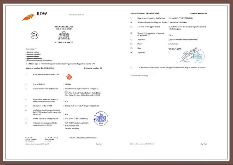 E-Mark認證,是歐洲共同市場對汽車及其它安全零配件等方面進行認證的認證,具有專業(yè)權(quán)威性和市場通用性。上汽大通不僅完全滿足國內(nèi)新能源電池相關(guān)法規(guī),更是以卓越的實力獲得了更為嚴苛的歐洲法規(guī)的認可。上汽大通和電池供應(yīng)商對E-Mark 相關(guān)的R100法規(guī)進行了認真研究,在高于國標的電池振動和耐火試驗標準方面,對電池結(jié)構(gòu)和安全性進行了重新的評估,在電池包設(shè)計時將安全性放在首位,對安全性進行了過量設(shè)計,經(jīng)過認真的工程準備后,于今年8月在國家機動車檢測中心(TUV授權(quán)檢測機構(gòu)),一次性通過了所有的E-Mark R100法規(guī)所有測試。